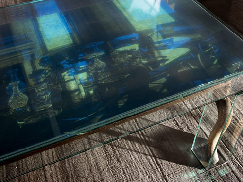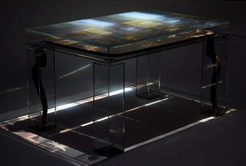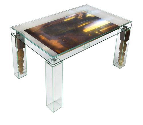 My furniture are vehicles of time, with the aid of technology they allow a journey into the past. Elements of old furniture found at random I treat as museum artifacts — I place them carefully into a glass showcase. Instead of restoring I secure them in their present state. I show them as they are now, bringing back to life their original function in a new form. Sometimes, with electric polarization, I change the glass into a frosted one, hiding contents. I use the slide of the piece in its best time. Then the projection of the picture from the past becomes sharp and readable. The furniture shines again in old glory.