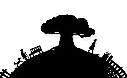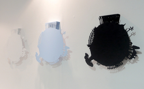 This clock does not tell time like a traditional clock, with hands and numbers. Instead it uses images; the figures of a grandmother, grandchild, and dog represent the hour, minute and second hands, respectively. These figures move through different scenes as time passes by. Very creative, indeed.