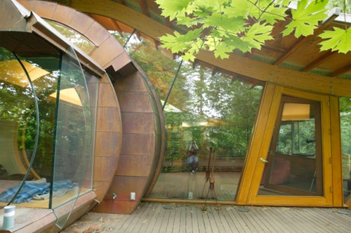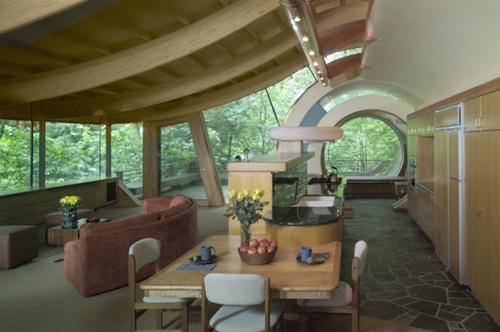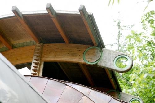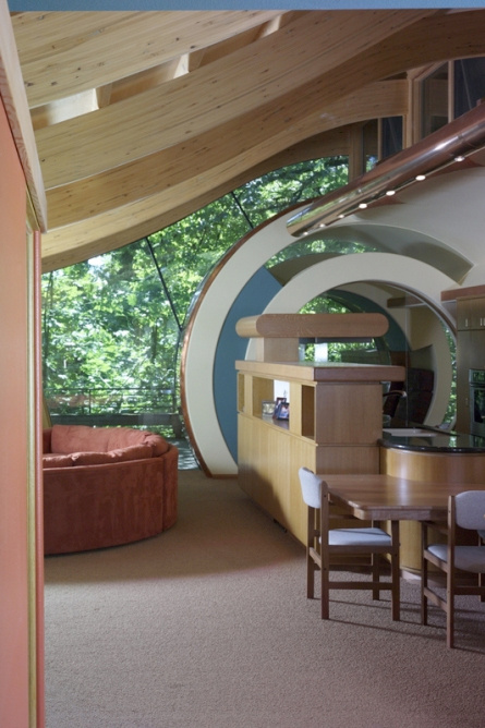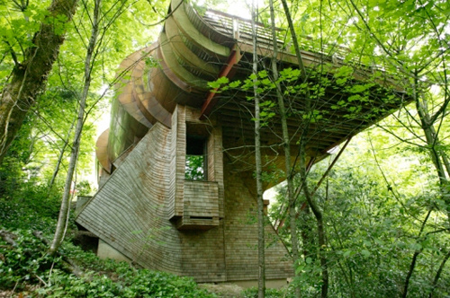 This giant tree house dubbed “The Wilkinson Residence” is located in Portland, Oregon. It is made entirely of natural wood and contains modern archetectural designs such as curved edges and round windows. Take a peek into the gallery below for some detailed exterior and interior shots of the home. Just imagine living in this thing!