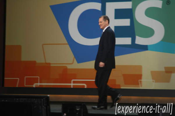 After waiting in line for about an hour, I walk into the Hilton Center presentation room and quickly grab the closest seat to the stage. At about 6:15PM, the announcer gives his usual instructions to turn off cell phones and be seated for the keynote. Music from Franz Ferdinand and Phoenix abruptly gets louder as everyone expects the show to begin. Promptly at 6:35PM the lights in the room go down, then up, some computers crash, and the main center-stage screen turns black. The announcer explains, “…we’re having a small power problem.” Funniest sight of the night–a few of the computers set up on stage went into Windows recovery mode. Oh boy. Finally, at around 6:54PM the lights go down for real this time, the CEA logo shows up on screen, and the Black Eyed Peas’ “I Got a Feeling” plays behind a short video of what’s to come this week on the show floor. Then Gary Shapiro came out to welcome us to CES (“the world cup of innovation”) and say how bad the economy has been and how well the tech industry has plowed through it. Finally, at 7:00PM (a full half hour behind schedule) Microsoft CEO Steve Ballmer is introduced to the stage.