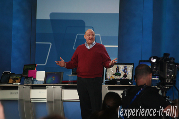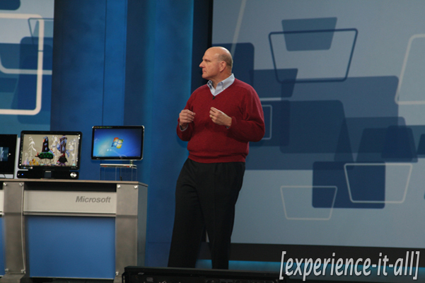 First let me start by saying that I am sorry about all the confusion. I had originally promoted this page to be a source for a “liveblog” (meaning up-to-the-minute live coverage) of the Microsoft keynote. Unfortunately due to many mishaps I was forced to cut the live out of liveblog. However, I was able to successfully record everything that did happen and you will find a full summary of the keynote below. Also, be sure to check out the large gallery of pictures from the event. As a press member, I was able to get up close and personal to Steve Ballmer and crew, so check ’em out!