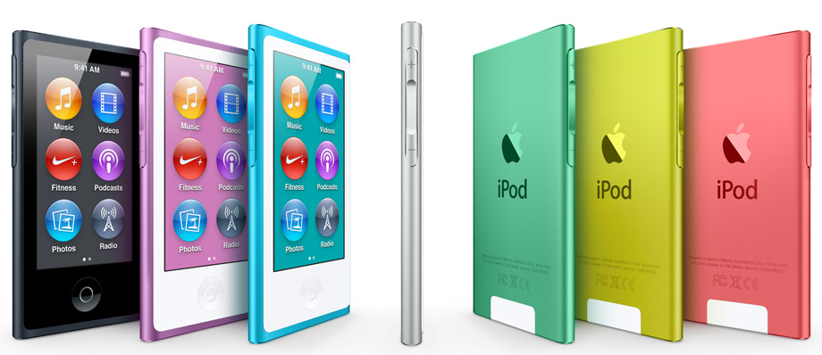 Last, Apple made sure to update their iPod lineup just before the holiday season comes around. The seventh generation iPod nano is seeing a major change in its form from its predecessor. It’s a mere 5.4mm thin (that’s 38% thinner than the previous nano), volume controls on the left side also serve as play/pause and forward/back controls, and then there’s the 2.5-inch multitouch display along with a dedicated physical home button underneath it. Widescreen video playback is back, and there’s fitness apps on board along with a built-in pedometer, radio with a live-pause feature, Bluetooth for wireless streaming, and the new Lightning connector. Apple promises 30 hours of music playback.