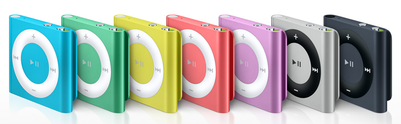 Once again, let’s talk pricing and availability. On the latter, Apple played coy and simply said to expect the new nano and touch to release in October. The new 16GB iPod nano will sell for $149 and come in eight mostly vibrant colors, including a (Product) Red variant. The new iPod touch has two storage capacities–32GB for $299 and 64GB for $399–and comes in six different colors, (Product) Red edition here too. Apple will continue to sell the fourth-gen touch in 16GB ($199) and 32GB ($249) models, and although the 2GB ($49) iPod shuffle didn’t see a hardware update this week, it is shipping in eight new colors to match those paint jobs available in the new nano.